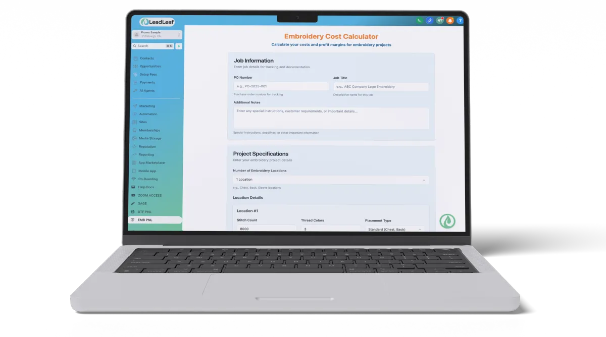 The LeadLeaf Embroidery & DTF Calculator shows your true costs and profit before production even begins. Finally — pricing tools built for decorators, not just machines.
